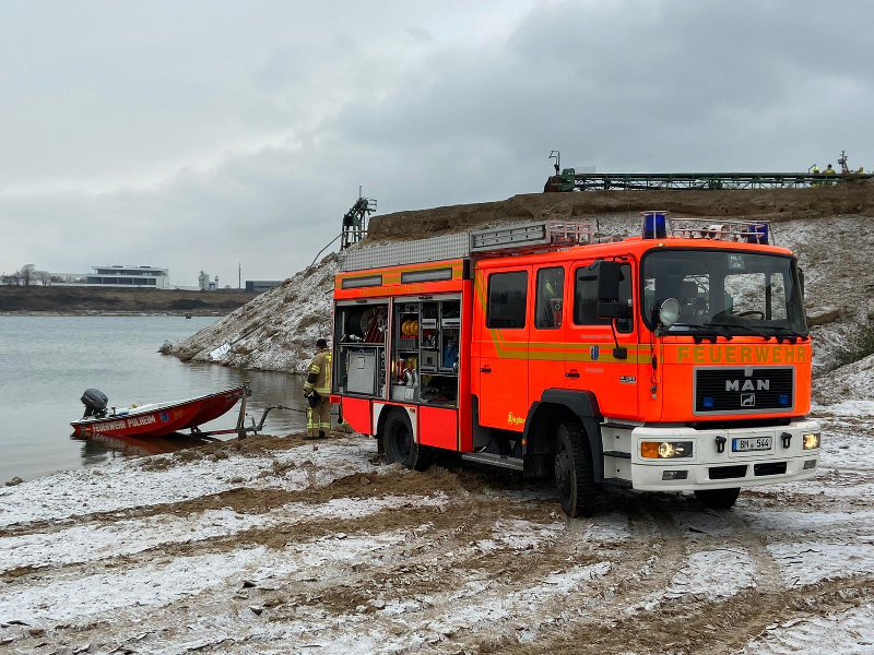 Die Feuerwehr Pulheim wurde mit dem Alarmstichwort "Öl auf Gewässer" zum Pulheimer See alarmiert. Dort sollte Öl aus einem Schwimmbagger in den See laufen.