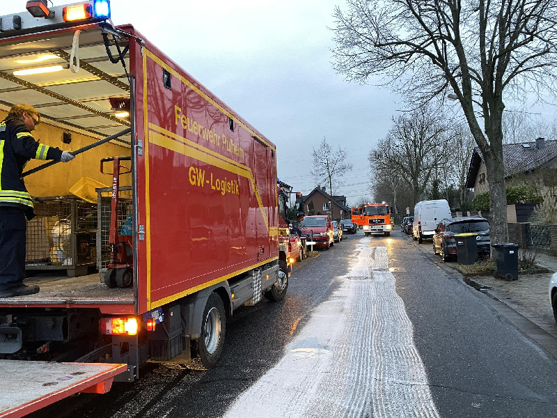 Am Montagnachmittag kam es zu einer Ölspur in der Ortslage Pulheim. Die zu erst alarmierten Kräfte der Hauptamtlichen Wache fanden eine ca. 1.000 Meter lange Ölspur vor, welche sich über mehrere Straßenzüge verteilt hatte. Auf Grund der Länge wurde der Löschzug Pulheim nachalarmiert. Vor Ort teilten sich die Kräfte auf. Die Hauptamtliche Wache übernahm den Bereich "Schürgespfad/An der Kriegershecke" und der Löschzug Pulheim den Bereich "Hackenbroicher Straße/Am Sportzentrum".