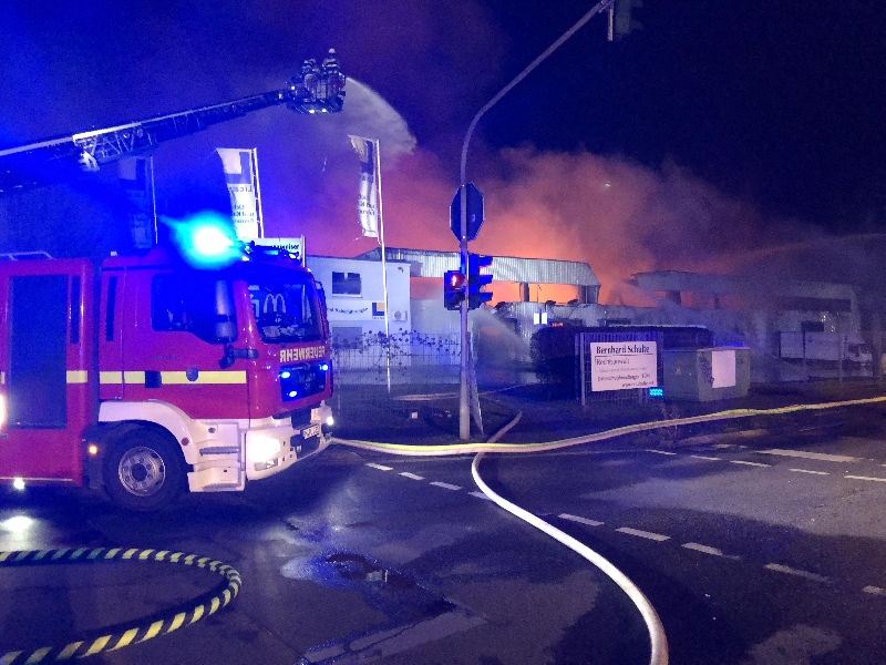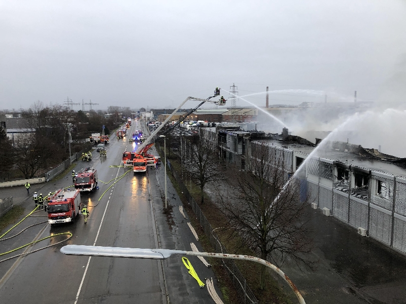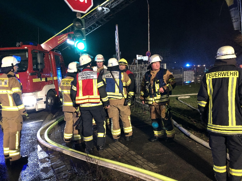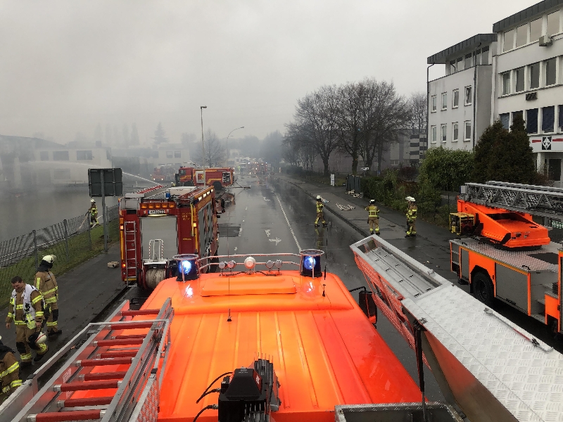 Vor Ort stand eine 15.000m2 große Halle im Vollbrand, was zu umfangreichen Stichworterhöhungen führte, so dass auch die Löschzüge Pulheim und Brauweiler mit sämtlichen Einheiten aus fast allen Kommunen des Rhein-Erft-Kreises alarmiert wurden. Aufgrund der großen Anzahl an Einsatzkräften wurde ebenfalls der Löschzug Geyen zur Verpflegung der Einsatzkräfte alarmiert.