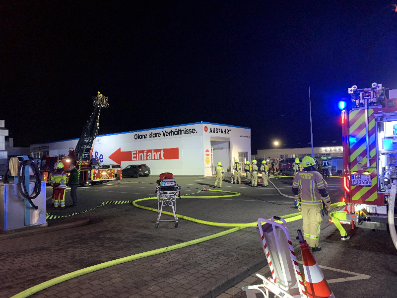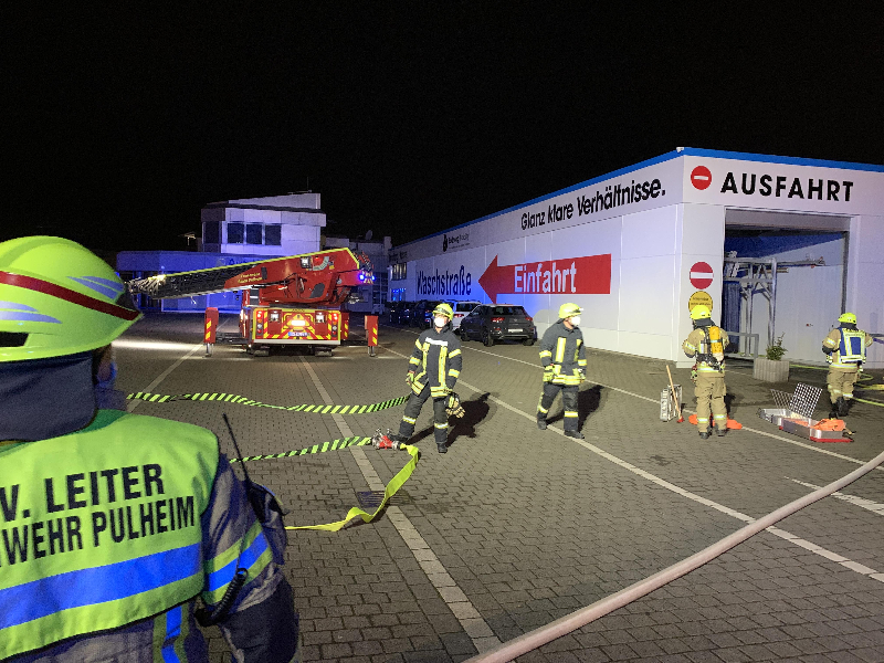Der Kreisleitstelle wurde eine Rauchentwicklung aus dem Dachbereich einer Waschanlage gemeldet. Daraufhin wurden die Hauptamtliche Wache, die Löschzüge Pulheim und Stommeln, der Einsatzleitwagen Brauweiler sowie ein Rettungswagen mit dem Stichwort "Gebäudebrand" alarmiert.