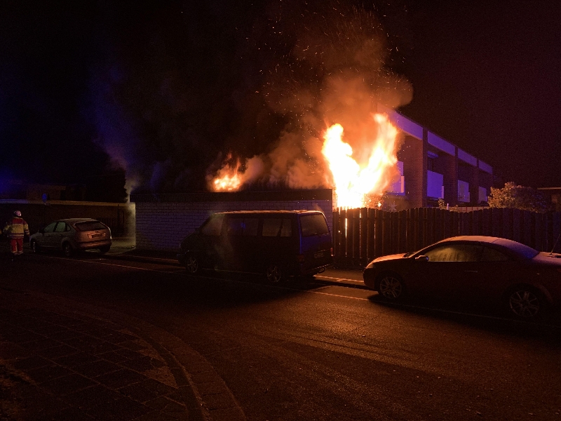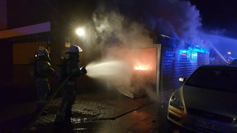 In der Silvesternacht brannte eine Garage in Pulheim völlig aus. Die Feuerwehr konnte ein Übergreifen des Feuers auf das Wohnhaus verhindern.