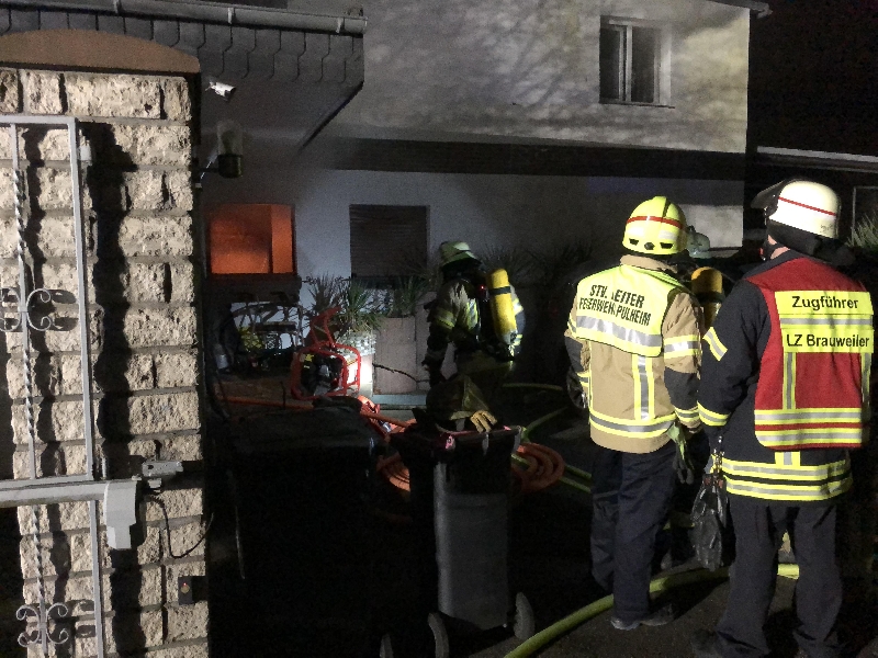 Neben der hauptamtlichen Wache aus Pulheim wurden die Löschzüge Brauweiler, Geyen und Pulheim alarmiert. Bei Eintreffen der Feuerwehr wurde festgestellt, dass die Küche im Erdgeschoss eines zweigeschossigen Hauses in vollem Umfang brannte. Der Bewohner hatte sich rechtzeitig mit seinem Hund ins Freie retten können und weitere Personen befanden sich zu diesem Zeitpunkt nicht im Haus. Der Bewohner wurde durch den Rettungsdienst behandelt und sicherheitshalber dem zuständigen Notfallkrankenhaus zugeführt.