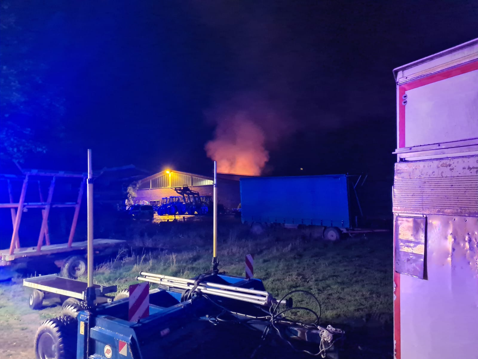 In der Nacht zum 28.09.2022 wurde die Leitstelle über den Brand eines Gebäudes in Stommeln informiert. Zunächst wurden, gegen 01:10 Uhr, die Hauptamtliche Wache und die Löschzüge Stommeln und Pulheim alarmiert. Bereits auf der Anfahrt war der Feuerschein weithin sichtbar. Da es sich bei dem Brandobjekt um einen außerhalb des Ortsgebietes von Stommeln gelegenen Bauernhof handelte, musste eine Löschwasserversorgung über eine lange Schlauchleitung hergestellt werden. Das Feuer hatte den Dachstuhl, in dem sich Wohnungen der Angestellten befinden, bereits komplett erfasst und drohte, auf eine direkt angrenzende Lagerhalle überzugreifen. Aufgrund dieser Gegebenheiten wurden die Löschzüge Geyen und Brauweiler nachalarmiert und zur weiteren Unterstützung die Löschzüge aus Bergheim-Glessen und Bergheim-Oberaußem sowie ein Spezialfahrzeug der Feuerwehr Frechen angefordert. Das Feuer wurde von zwei Seiten aus mit vier Strahlrohren und mit dem Wasserwerfer der Drehleiter bekämpft. Durch diesen Einsatz konnte ein Übergreifen des Feuers auf die angrenzende Lagerhalle verhindert werden. Im späteren Verlauf konnten auch Einsatzkräfte im Innenangriff zu Kontroll- und Nachlöscharbeiten eingesetzt werden. Bei den Löscharbeiten verletzte sich ein Feuerwehrmann leicht. Dieser wurde vor Ort vom Rettungsdienst behandelt. Ein Transport in ein Krankenhaus war nicht erforderlich. Glücklicherweise kamen keine weiteren Personen zu Schaden.