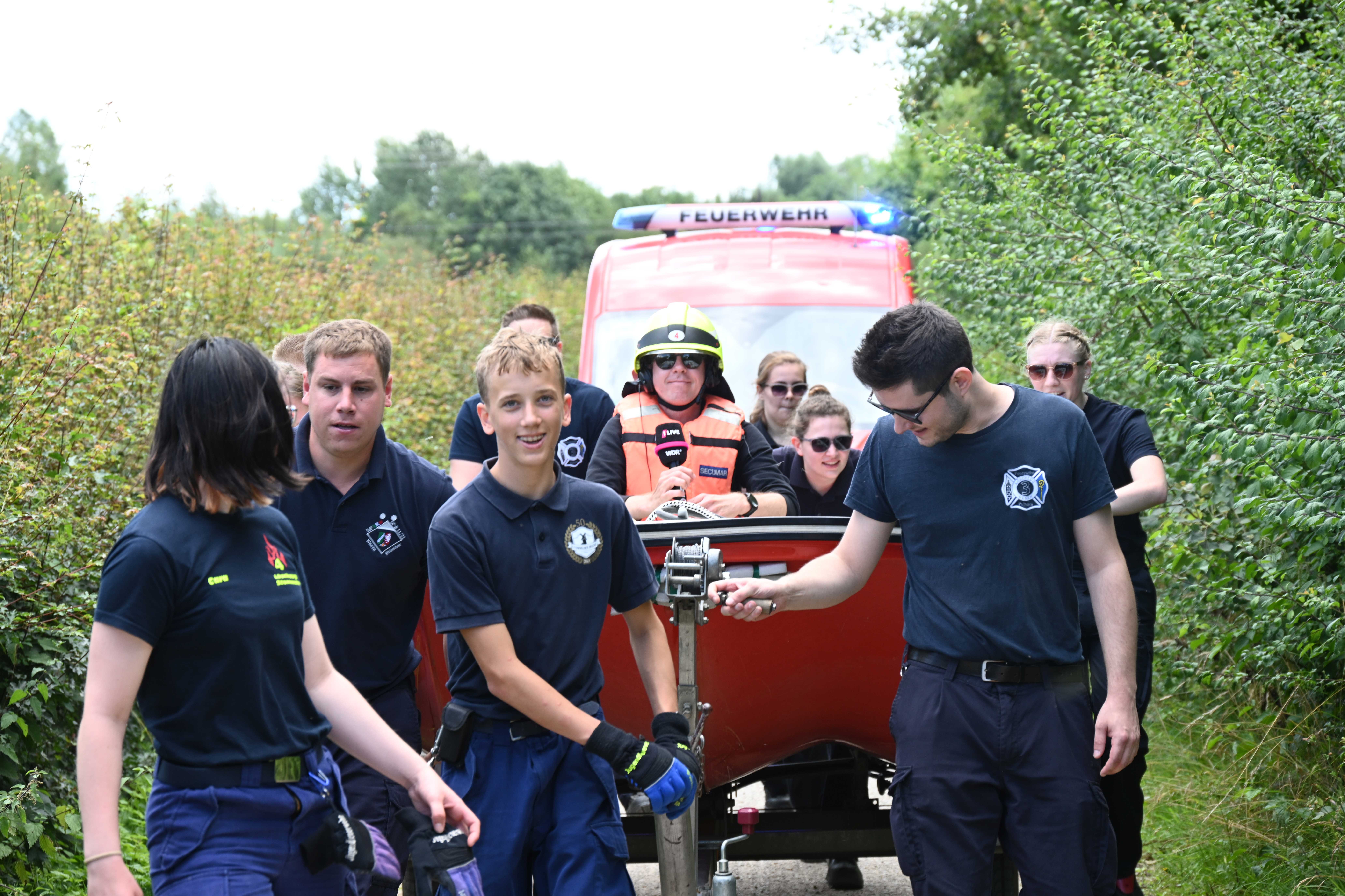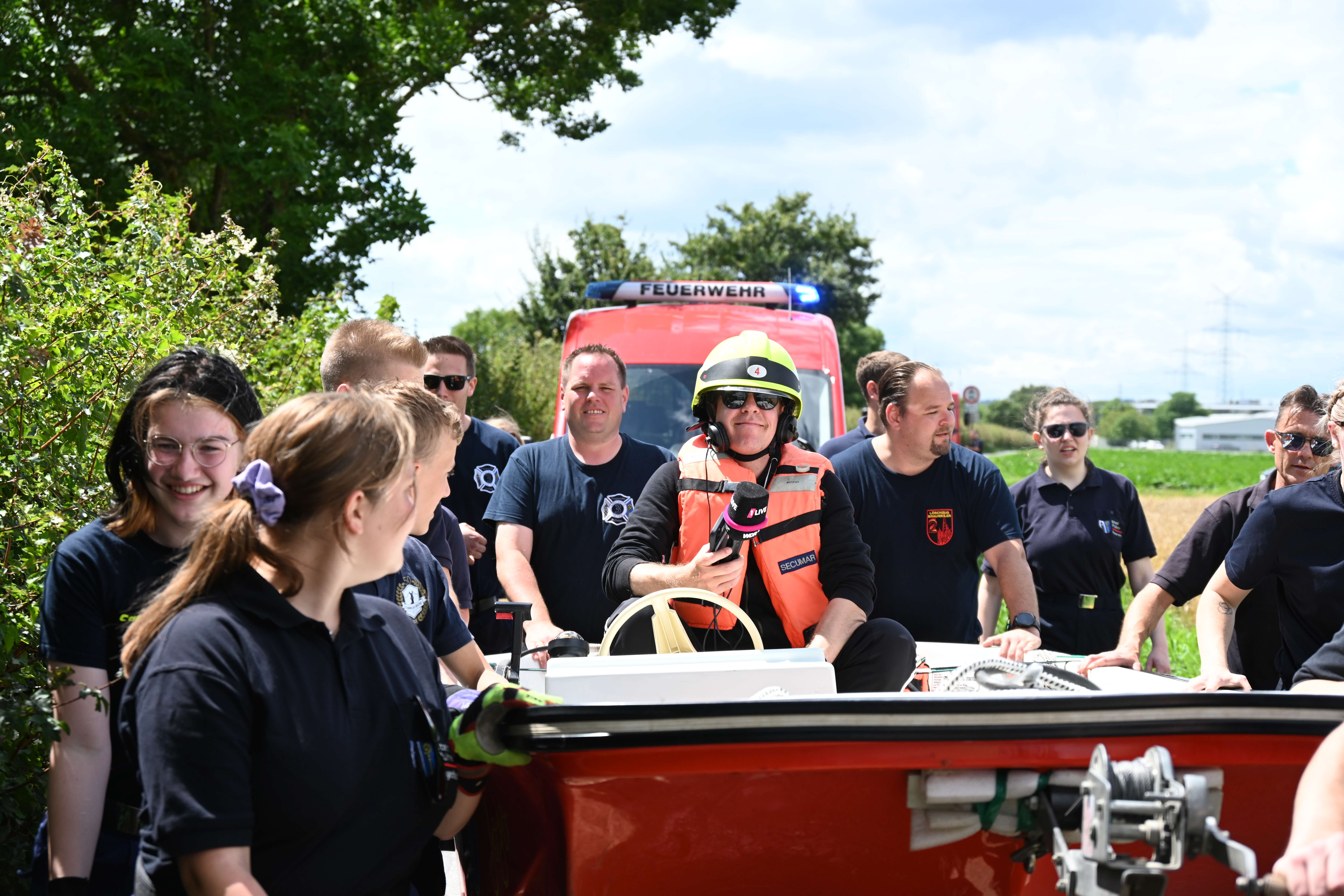 Seit gut einer Woche wurden die Hörer des Radiosenders daher aufgerufen, diese Challenge „Road to Parookaville“ tatkräftig zu unterstützen. Bereits kurz vor diesem öffentlichen Aufruf wurde auch die Feuerwehr Pulheim von 1LIVE angesprochen, ob man sich nicht vorstellen könne, an dieser Aktion teilzunehmen. Unter der Organisation des Löschzugs Stommeln erfolgte ein Abfrage und schnell war klar, dass die ehrenamtlichen Kräfte der Löschzüge Brauweiler, Geyen, Pulheim und Stommeln bei dieser spektakulären Aktion unterstützen werden. Als stellvertretender Löschzugführer der Stommeler Kräfte organisierte und koordinierte Gerrit Goos die Vorbereitungen und war von der Unterstützung und den vielen guten Ideen aus den vier Löschzügen angetan. „Wir konnten gar nicht alle Vorschläge unserer Mitglieder umsetzen und haben uns auf die praktischste Lösung konzentriert und das hat genauso prima geklappt“ zeigte er sich nach dem Erreichen der durch die Feuerwehr absolvierten Etappe am Stommelner Marktplatz erleichtert.