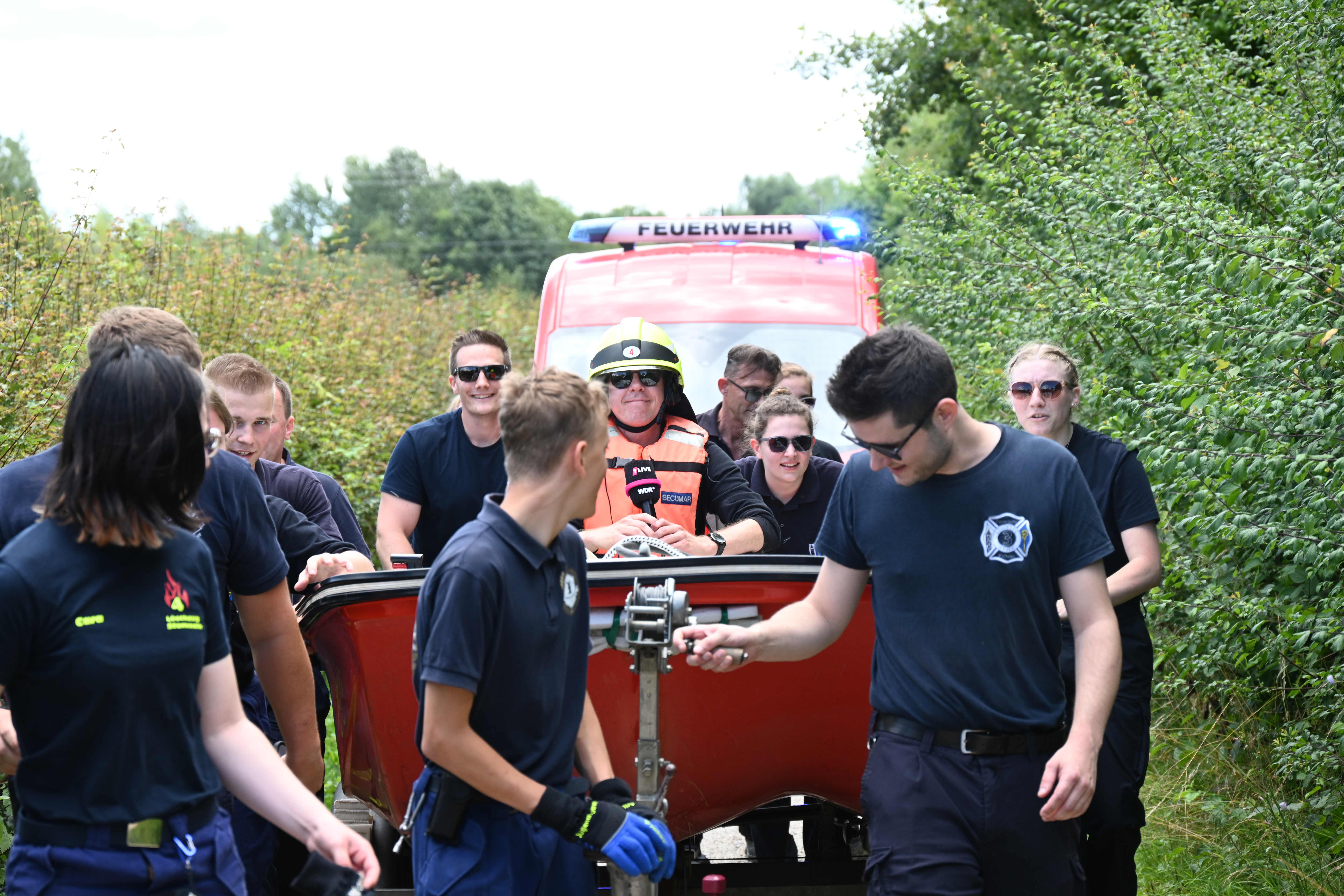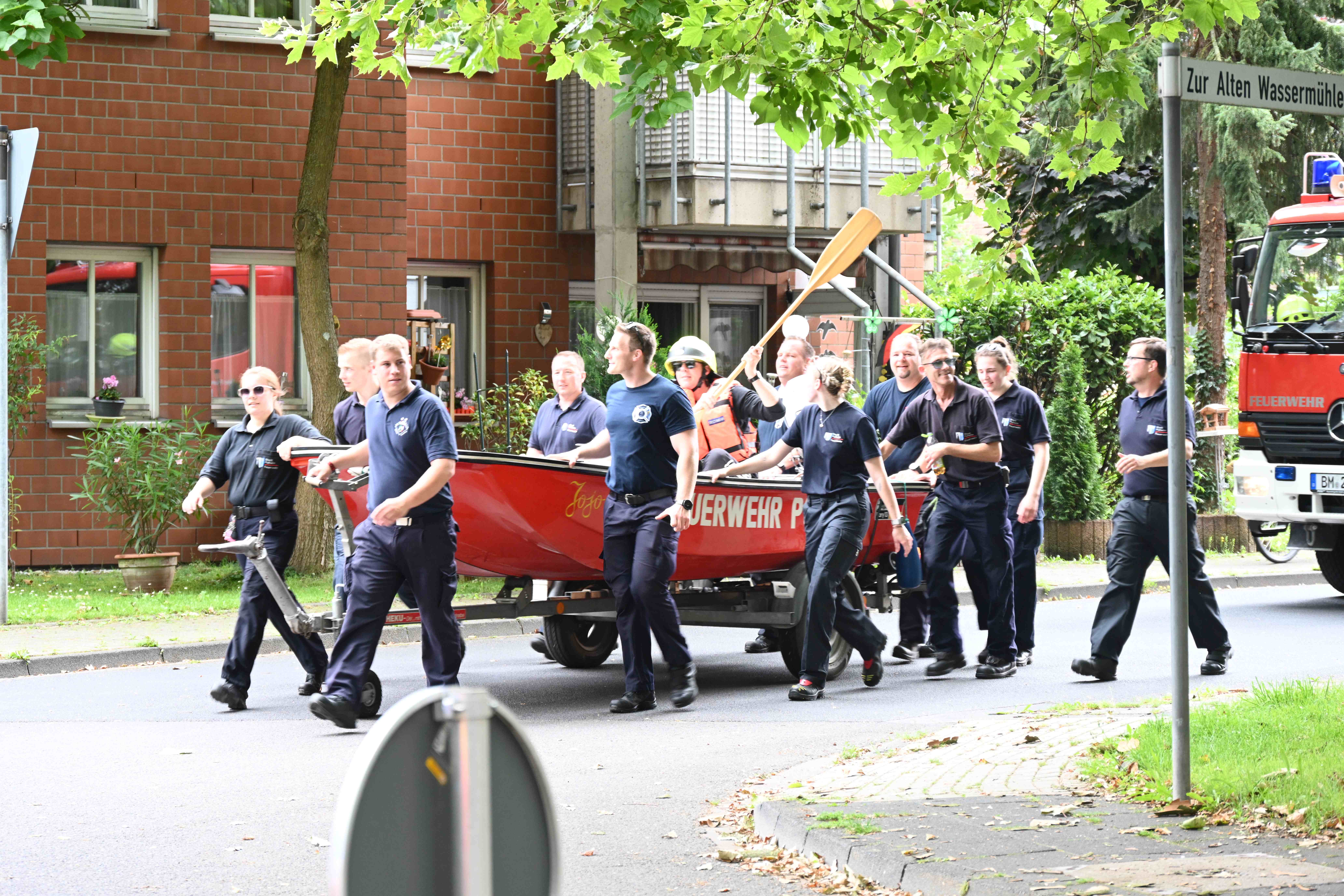 Seit gut einer Woche wurden die Hörer des Radiosenders daher aufgerufen, diese Challenge „Road to Parookaville“ tatkräftig zu unterstützen. Bereits kurz vor diesem öffentlichen Aufruf wurde auch die Feuerwehr Pulheim von 1LIVE angesprochen, ob man sich nicht vorstellen könne, an dieser Aktion teilzunehmen. Unter der Organisation des Löschzugs Stommeln erfolgte ein Abfrage und schnell war klar, dass die ehrenamtlichen Kräfte der Löschzüge Brauweiler, Geyen, Pulheim und Stommeln bei dieser spektakulären Aktion unterstützen werden. Als stellvertretender Löschzugführer der Stommeler Kräfte organisierte und koordinierte Gerrit Goos die Vorbereitungen und war von der Unterstützung und den vielen guten Ideen aus den vier Löschzügen angetan. „Wir konnten gar nicht alle Vorschläge unserer Mitglieder umsetzen und haben uns auf die praktischste Lösung konzentriert und das hat genauso prima geklappt“ zeigte er sich nach dem Erreichen der durch die Feuerwehr absolvierten Etappe am Stommelner Marktplatz erleichtert.